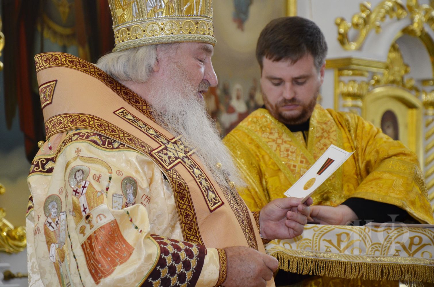 Большой вклад внес Лебеденко Олег Александрович, генеральный директор ООО «Дворцовый ряд». Они помогали не только в строительстве этого собора, но и других храмов, гимназия содержится. Руководитель компании Урясов уже получил награду, мы благодарим и вас. Вы награждены медалью князя Владимира. Помогай и храни вас Господь.