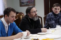 Общение архипастыря с представителями сборной России продолжилось в трапезной епархиального управления. За чаепитием спортсмены рассказали владыке о ходе турнира и о развитии детского хоккея с мячом, которое активно поддерживает священноначалие Русской Православной Церкви.