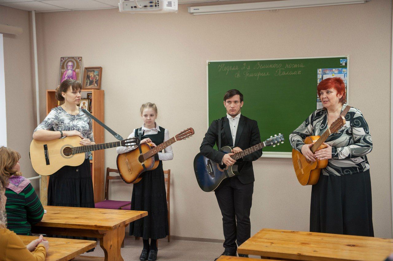 По завершении отведенного времени школьники пообедали в трапезной храма в честь иконы Божией Матери «Неопалимая купина», поучаствовали в экскурсионной прогулке по территории храма и посетили концерт духовной музыки, подготовленный ансамблем гитарной песни «Душа».