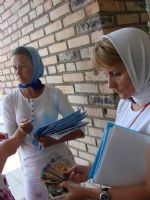 По окончании богослужения прихожане храма традиционно отправились в самые тяжёлые отделения больницы – травматологию и хирургию, где люди могут находиться по несколько месяцев. Пациенты с радостью принимают святую воду, иконки, молитвословы, акафисты и листовки, распечатанные специально для больных. Те, кто находится в больнице долго, встречают волонтёров как родных. Обычно такие посещения совершаются после воскресной литургии несколько раз в месяц.