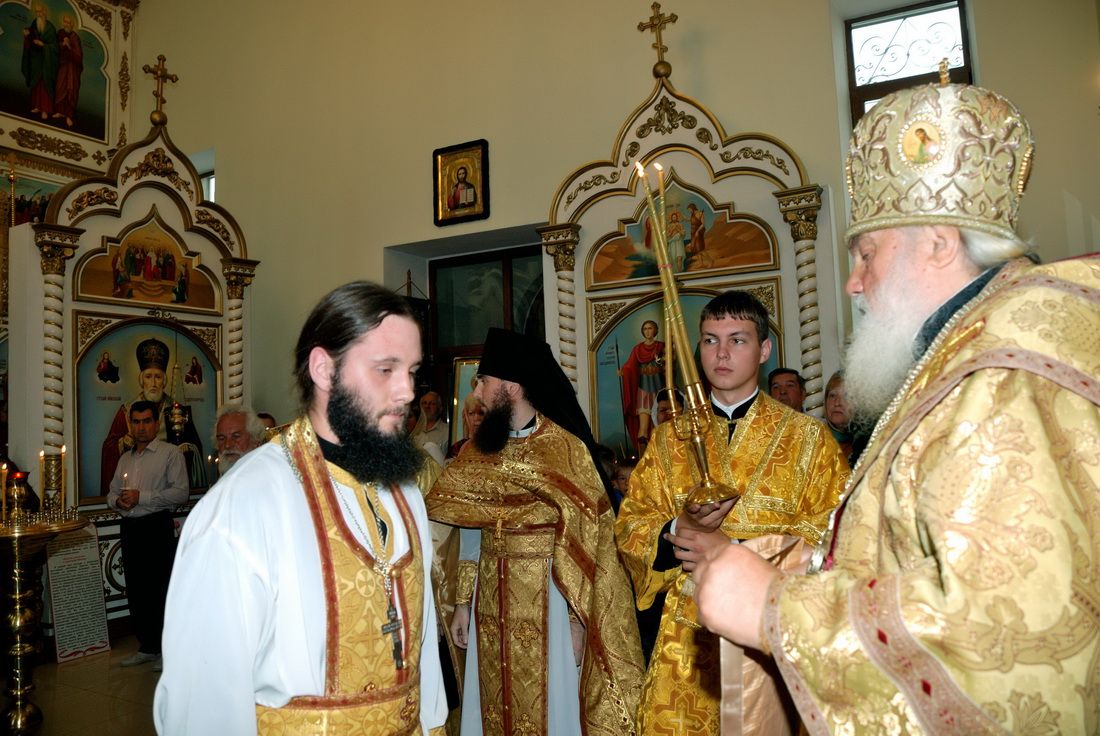 Уссурийск.17 августа 2014. Митрополит Владивостокский и Приморский Вениамин возглавил Божественную литургию в Никольском храме города Уссурийска. Его Высокопреосвященству сослужили благочинный I округа Владивостокской епархии иерей Димитрий Федорин; настоятель храма, благочинный IV округа иеромонах Нафанаил (Алтухов), иеромонах Алипий (Колдомов), протодиакон Николай Васильевич Наплавков, духовенство собора. За богослужением иеромонах Алипий (Колдомов) был награждён набедренником.