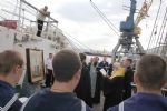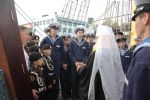 По окончании молебна икону перенесли на борт фрегата. Провожать святыню отправились все прихожане храма. На борту «Паллады» свободные от вахты курсанты и офицеры во главе с капитаном Николаем Зорченко приняли участие в кратком молебне. По окончании молебна митрополит Вениамин пообщался с курсантами, рассказал им о том, что морской Крестный ход принесет Порт-Артурскую икону во все города, куда будет заходить «Паллада», в том числе и в легендарный Далянь, рядом с которым находится город Люйшунь, известный каждому русскому под именем Порт-Артур. «Икона должна была попасть в этот город более ста лет назад, ещё во время русско-японской войны. Тогда её следы затерялись. Спустя многие десятилетия эта икона была чудесным образом обретена и с 2008 года находится в Покровском кафедральном соборе Владивостока, - рассказал Его Высокопреосвященство. - Мы все будем молиться Господу и Его Пречистой Матери, чтобы ныне этот поход завершился благополучно».