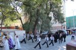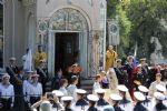 Под колокольный звон в сопровождении почётного караула митрополит Вениамин на руках перенёс ковчежец к храму в честь святого апостола Андрея Первозванного.