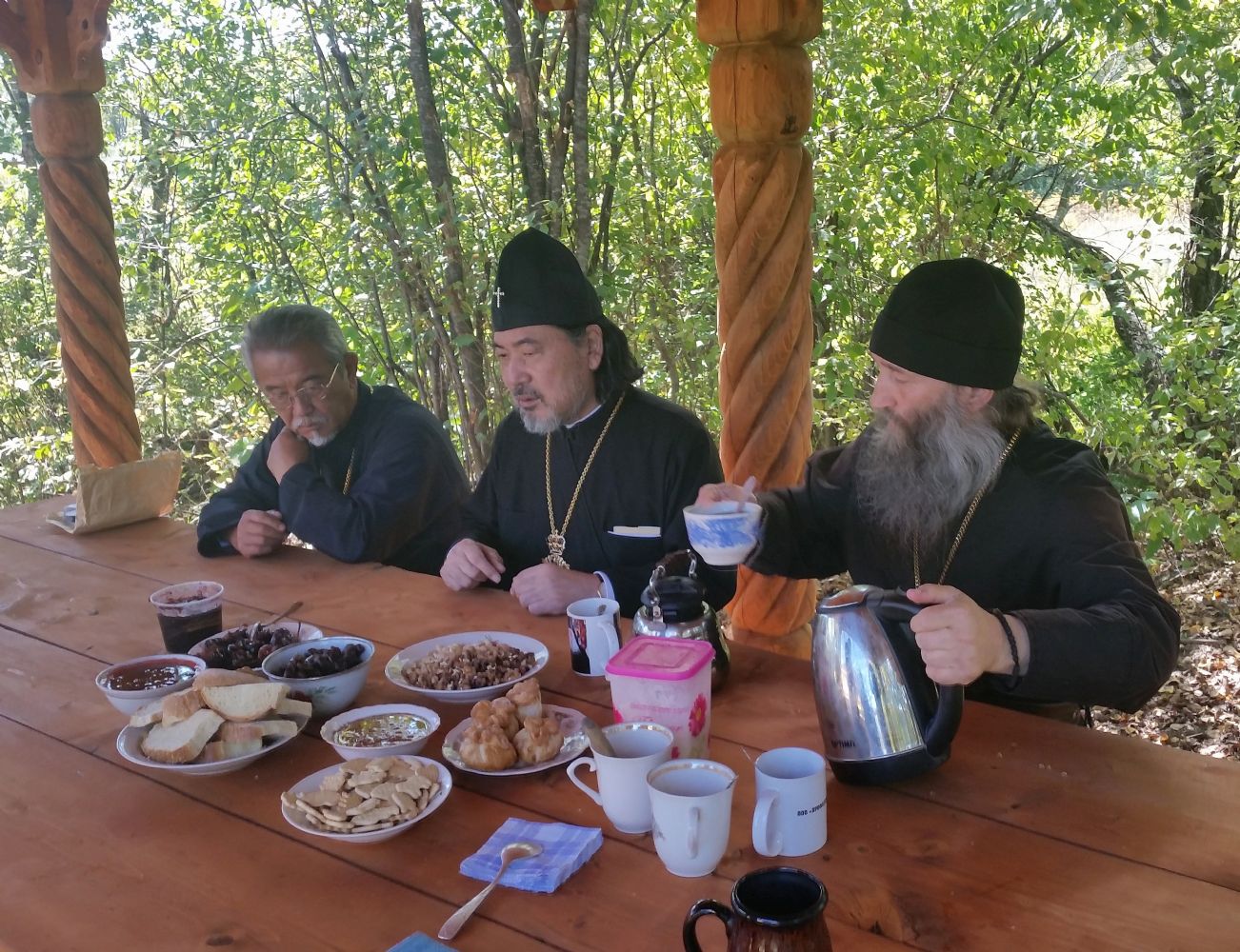 Японские гости – архиепископ Сендайский Серафим и клирик подворья Русской Православной Церкви в Токио протоиерей Иоанн Нагая – посетили мужской Иоанно-Предтеченский скит Арсеньевской епархии. В дар скиту владыка Серафим также передал частицу мощей.