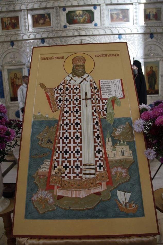 - Новую икону к нам доставили как раз к визиту Японской делегации, образ был изготовлен в Москве. Это большая ростовая икона, ее написала иконописециконописец Александра Штатнова, которая по благословению владыки Гурия изготовила уже несколько икон для Арсеньевской епархии. И когда частица святых мощей была доставлена в Арсеньев, владыка Гурий и владыка Серафим вложили в эту икону мощевик, - отметила участница встречи, руководитель пресс-службы Арсеньевской епархии Екатерина Придворова.