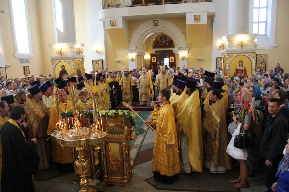 Весь день в соборе проходили богослужения, молебны у ковчега с мощами.