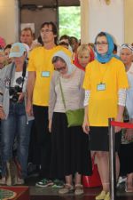 Юноши и девушки, волонтеры, в ярких желтых футболках с надписью «Молодёжный отдел. Приморская митрополия» следили за порядком, помогали паломникам, раздавали специально напечатанные к принесению мощей святого князя Владимира листовки, буклеты и маленькие иконки святого.