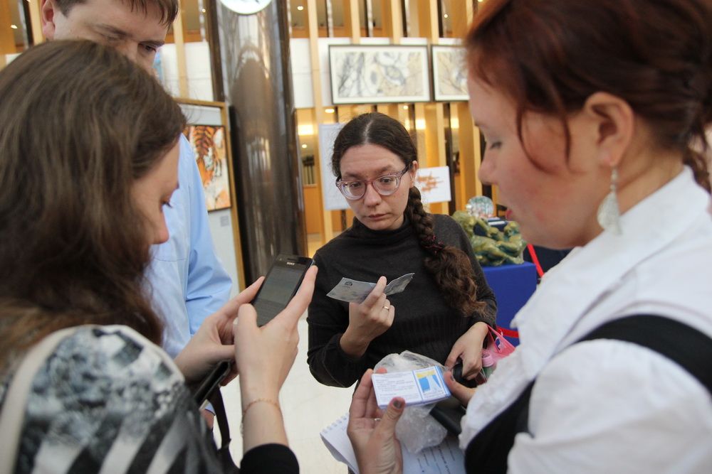 Юноши и девушки из Молодёжного отдела Владивостокской епархии раздавали зрителям визитки своей организации и буклеты, изданные к 1000-летию преставления святого князя Владимира.