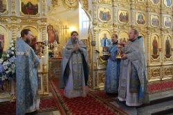 Владивосток. Во всех храмах епархии в день Покрова Божией Матери прошли праздничные богослужения. Митрополит Владивостокский и Приморский Вениамин отслужил праздничную литургию в храме Покрова Божией Матери Уссурийска. Ему сослужили настоятель храма, благочинный II округа протоиерей Сергий Якутов и клирики храма протоиерей Евгений Копысов, иерей Сергий Качев, иерей Павел Моисеев.