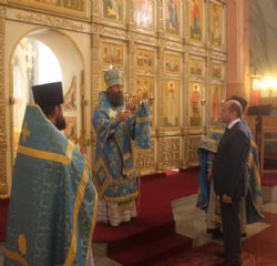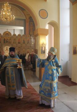 По завершении службы епископ Иннокентий произнес проповедь о празднике Покрова Божией Матери и отметил значимость благоукрашения храма в КНДР: