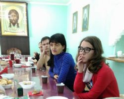 Накануне они посетили Детскую больницу в районе Змеинки, где находятся дети, от которых отказались родители. Детки совсем маленькие, всех одеть, вывести-вынести на прогулку, поиграть с ними – требует большого труда. Вечером в трапезной Покровского кафедрального собора собрались добровольцы Службы " Милосердие ", чтобы обсудить текущую работу.