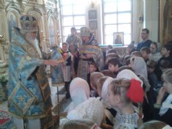 В завершении праздничной Литургии по целованию креста все девочки получили по шоколадке.