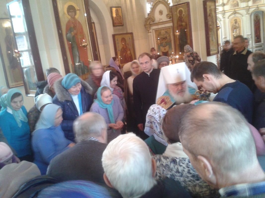 Его Высокопреосвященству сослужили: настоятель храма святых равноапостольных Кирилла и Мефодия протоиерей Игорь Талько; клирики храма: протоиерей Андрей Метелёв, руководитель сектора по вопросам защиты материнства и детства при епархиальном отделе по церковной благотворительности и социальному служению и игумен Никита (Зеленюк). А так же протодиакон Николай Наплавков.