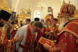 Уссурийск. 15 мая 2016 года Из Владивостока в Уссурийск митрополит Владивостокский и Приморский Вениамин доставил великую святыню — частицы древа Животворящего Креста Господня и шипа Тернового Венца Спасителя. В Покровском храме города Уссурийска владыка Вениамин вручил Патриаршую награду настоятелю храма Серафима Саровского в Уссурийске, настоятелю Порт-Артурского храма при Штабе 5-й Армии протоиерею Григорию Цуркану, штатному помощнику командира мотострелковой бригады. За усердное служение Церкви Божией Указом Святейшего Патриарха Московского и всея Руси Кирилла протоиерей Григорий удостоен права ношения палицы.