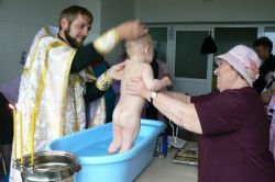 Находка. 6 июня 2016 года состоялось Крещение детей в Находкинском Доме ребенка - сообщает сайт Находкинской епархии. Ежегодные Таинства Крещения в Доме ребенка проходят с 2002 года. Крестными родителями для малышей в возрасте от 4 месяцев до 2 лет стали прихожане храма Рождества Христова и Казанского Кафедрального собора города Находки. Никто из малышей не плакал, атмосфера была торжественной и благодатной. Таинство Крещения совершил иерей Иоанн Капитанюк, клирик храма в честь Рождества Христова.