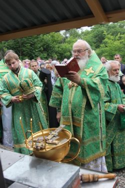 У источника Высокопреосвященнейший владыка совершил молебен преподобному Тихону Калужскому, во время которого освятил воды в обустроенном колодце и обильно окропил крестоходцев освящённой водой.