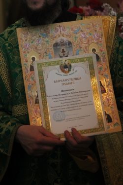 По окончании молебна крестный ход вернулся в храм, где владыка Вениамин наградил благотворителей, благоукрасителей и активных прихожан Архиерейскими наградами.