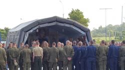 Уссурийск. Клирик Покровского храма, духовник десантно-штурмовой бригады иерей Сергий Качев совершил Таинство Крещения над более чем шестьюдесятью бойцами бригады. Таинство было совершено в походном храме, доставленном в ходе плановых командно-штабных учений уссурийской бригады ВДВ.