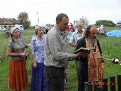 На месте разрушенного храма отслужили молебен с акафистом Порт-Артурской иконе Божией Матери, в соединении с молебном о благословении Божьего творения (который служится в первое воскресенье сентября). Далее на могиле отслужили литию о упокоении.