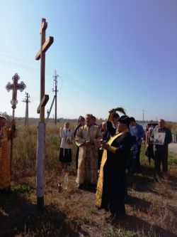 И вот подходим к Кресту, служим молебен благодарственный. Через некоторое время появляется Крестный ход прихожан второго храма. Ещё раз благодарим Бога за милость к нам, грешным, за то, что совершили традиционное молитвенное шествие.