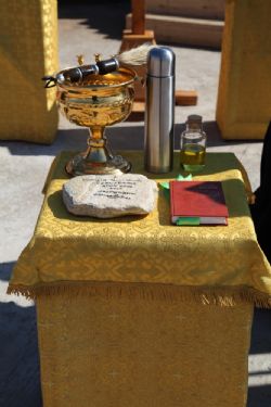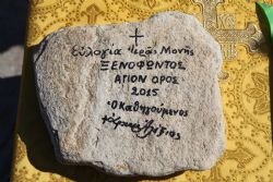 В основание фундамента храма был заложен камень, привезенный из Свято-Ксенфонтова монастыря Святой Горы Афон.