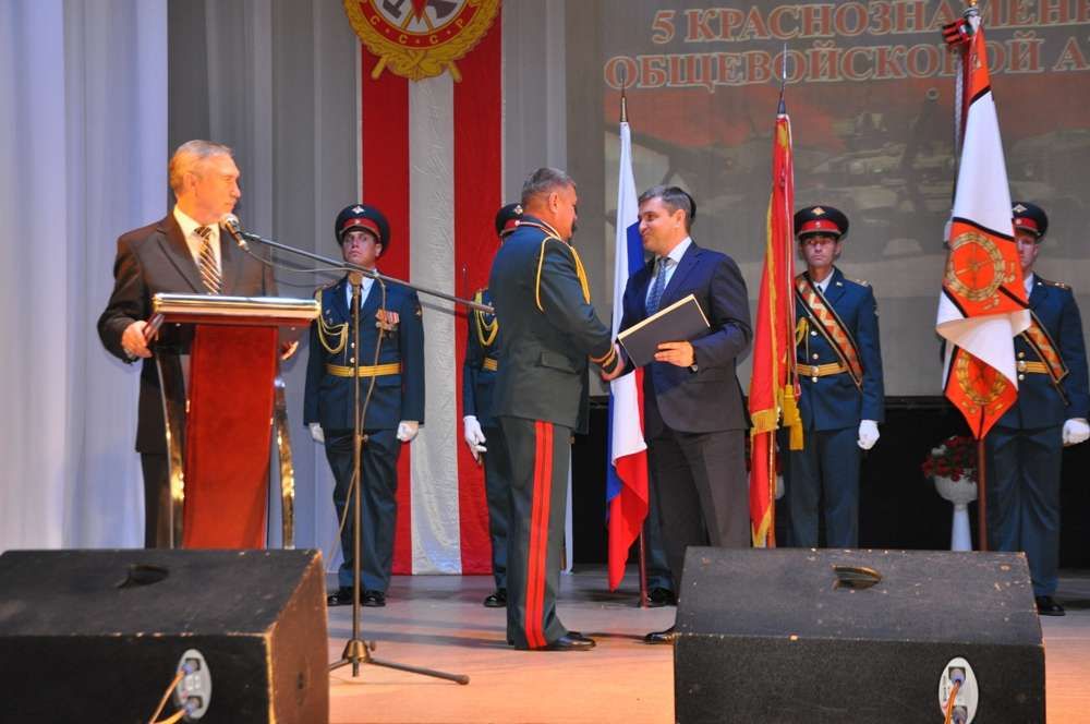 Уссурийск. В торжественном собрании, посвященном празднованию 75-летия со дня образования 5-й Краснознаменной общевойсковой армии приняли участие губернатор Приморского края Владимир Миклушевский, митрополит Владивостокский и Приморский Вениамин, глава администрации Уссурийского городского округа Евгений Корж, представители Законодательного собрания Приморского края, уссурийской Думы, совета ветеранов 5-й армии и другие.