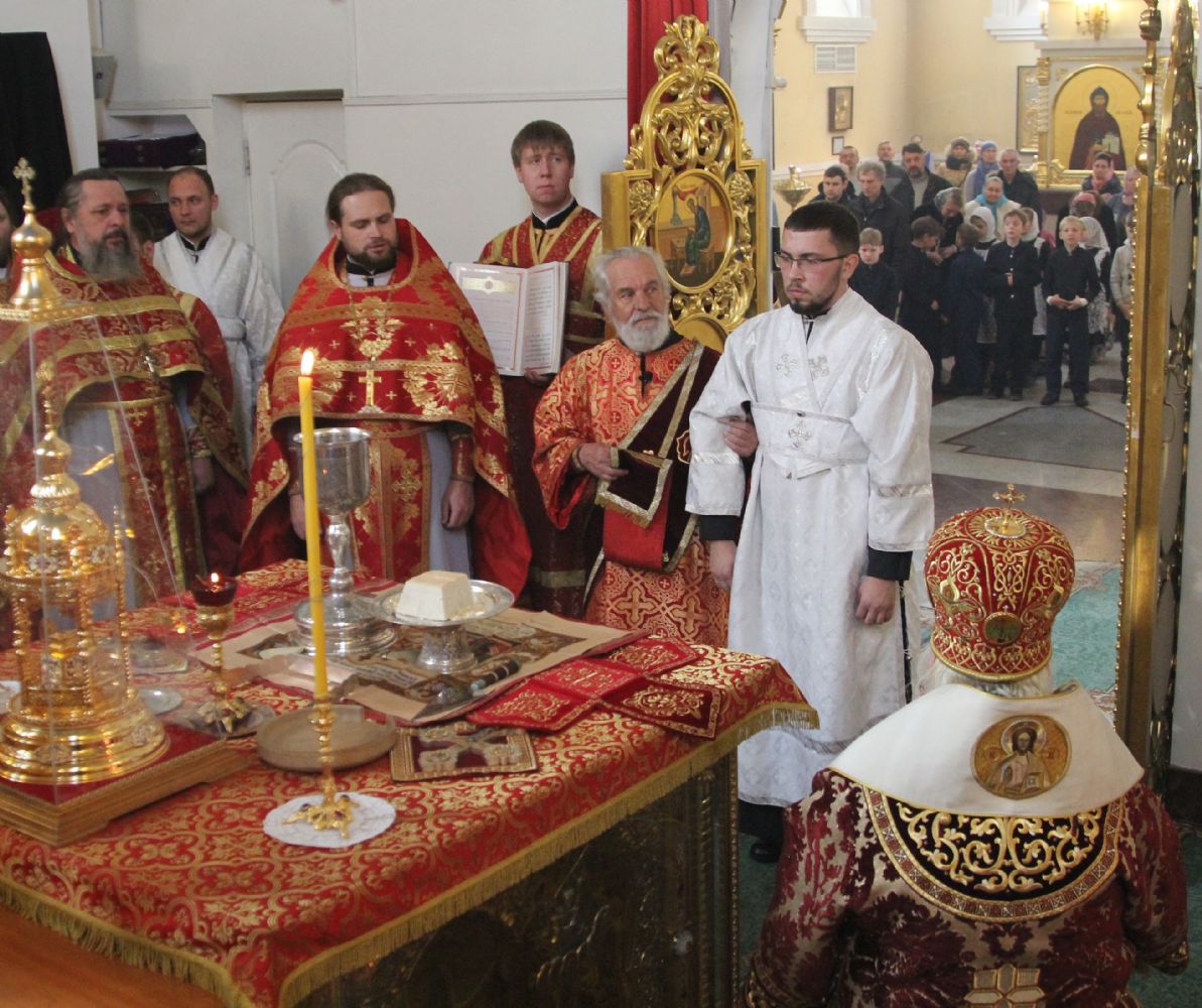 За богослужением митрополит Вениамин совершил диаконскую хиротонию — рукоположил во диакона Илью Талько. Илья Игоревич Талько родился в семье священника — ныне председателя Попечительского совета Православной гимназии — протоиерея Игоря Талько; окончил Духовный центр подготовки церковных специалистов (Духовное училище Владивостока); в настоящее время продолжает духовное образование в Хабаровской Духовной семинарии. Рукоположен во диакона и старший брат Ильи — Константин Талько, чью диаконскую хиротонию митрополит Вениамин совершал тремя годами ранее, 14 октября 2013 года, в Покровском кафедральном соборе.