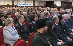 Глава УМВД Приморья поблагодарил сотрудников органов внутренних дел за службу, а представителей законодательной и исполнительной власти, правоохранительных и контролирующих ведомств, институтов гражданского общества и средств массовой информации – за деятельную помощь и эффективную совместную работу по защите жителей и гостей края от преступных посягательств, обеспечению общественного правопорядка и безопасности граждан, повышению правосознания жителей края.