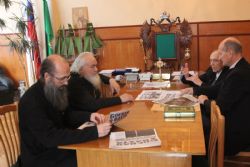 Владивосток. 8 декабря в епархиальном управлении митрополит Владивостокский и Приморский Вениамин и епископ Уссурийский Иннокентий, викарий Владивостокской епархии встретились с ответственным секретарём газеты Краснознамённого Тихоокеанского Флота России "Боевая вахта" Николаем Петровичем Журовым и старейшим сотрудником газеты Марленом Сергеевичем Егоровым.