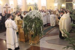 За вечерним Соборным богослужением молились более трехсот прихожан. Высокопреосвященному владыке сослужили: благочинный II округа протоиерей Сергий Якутов; руководители епархиальных отделов; ключарь собора протоиерей Александр Талько, клир храмов и монастырей.