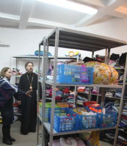 По благословению Его Преосвященства под склад было выделено помещение площадью 47 квадратных метров, в котором добровольцы смогли организовать сбор, сортировку и раздачу вещей, колясок и детских кроваток, игрушек, продуктовой помощи и предметов гигиены для малышей.