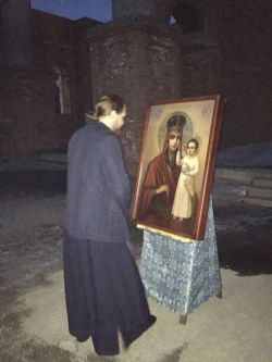 А в минувшую субботу, вечером 4 марта, образ Божией Матери «Призри на смирение» был доставлен на место строительства Спасо-Преображенского кафедрального собора. Священник Димитрий Федорин, председатель Приходского совета Преображенской церкви, совершил в стенах строящегося собора перед чудотворной святыней молебен. Духовенство и сопровождавшие святыню также вознесли перед принесенной иконой особую молитву, благословленную митрополитом Вениамином, — о поддержке и скорейшем завершении строительства во Владивостоке Преображенского собора.