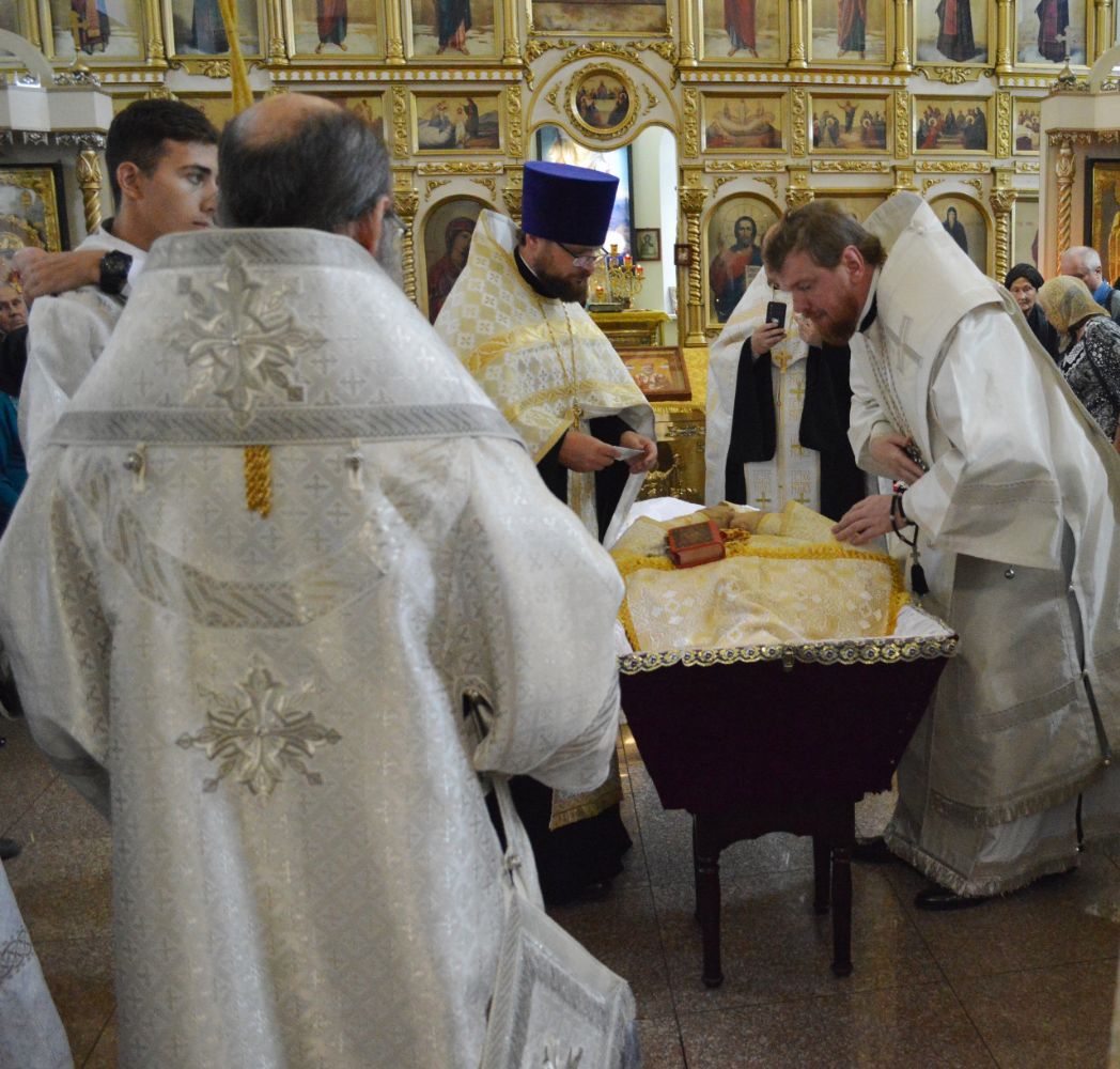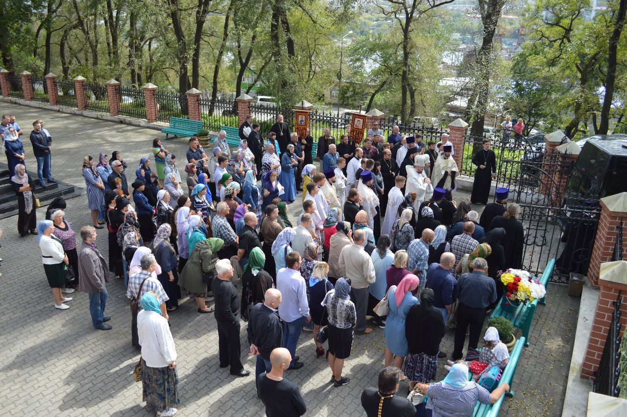 Его Высокопреосвященству сослужили викарий Владивостокской епархии епископ Уссурийский Иннокентий, благочинный VI округа Владивостокской епархии протоиерей Владимир Капитанюк, благочинный I округа протоиерей Димитрий Федорин, благочинный II округа протоиерей Сергий Якутов, благочинный III округа протоиерей Евгений Маляр, ключарь храма Покрова Пресвятой Богородицы г. Владивостока иеромонах Иоанн (Костин), собор духовенства Приморской митрополии.