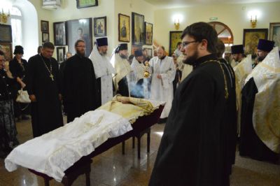 После пения заупокойных стихир надгробные слова произнесли митрополит Владимир и протоиерей Владимир Капитанюк. После чего митрополитом Владимиром была прочитана разрешительная молитва.