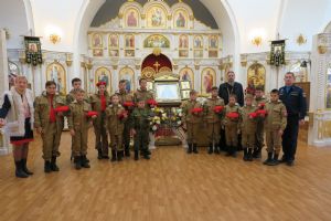 Отец Сергий рассказал юнармейцам о житие святого пророка Илии и подвел их к главной иконе Воздушно-космических сил и Воздушно-десантных войск РФ пророка Божия Илии, которая была доставлена в столицу Дальнего Востока по благословению митрополита Владивостокского и Приморского Владимира, а накануне принесена в храм Покрова Пресвятой Богородицы для поклонения. Все желающие, а это 15 детей в возрасте от 8 до 14 лет, смогли приложиться к иконе.