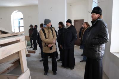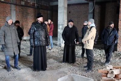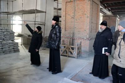 После совещания митрополит Владимир в сопровождении представителей подрядных организаций осмотрел строительную площадку.