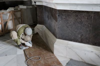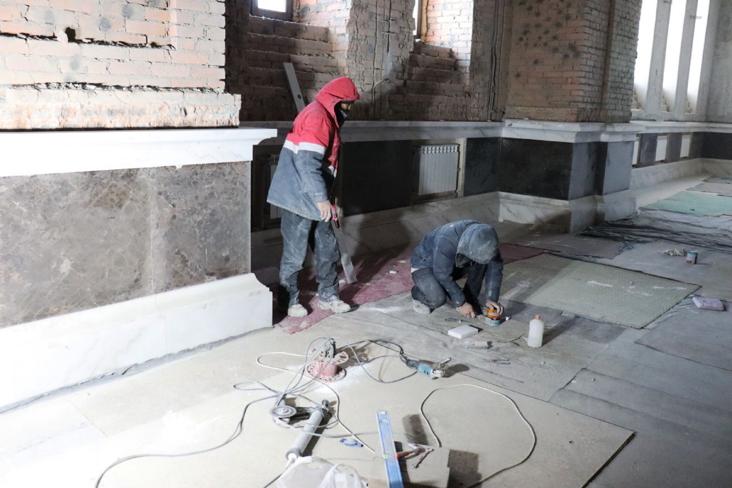 В настоящее время ведутся работы по оштукатуриванию стен храма, укладке мраморной плитки и облицовке стен в храме и стилобатной части собора.