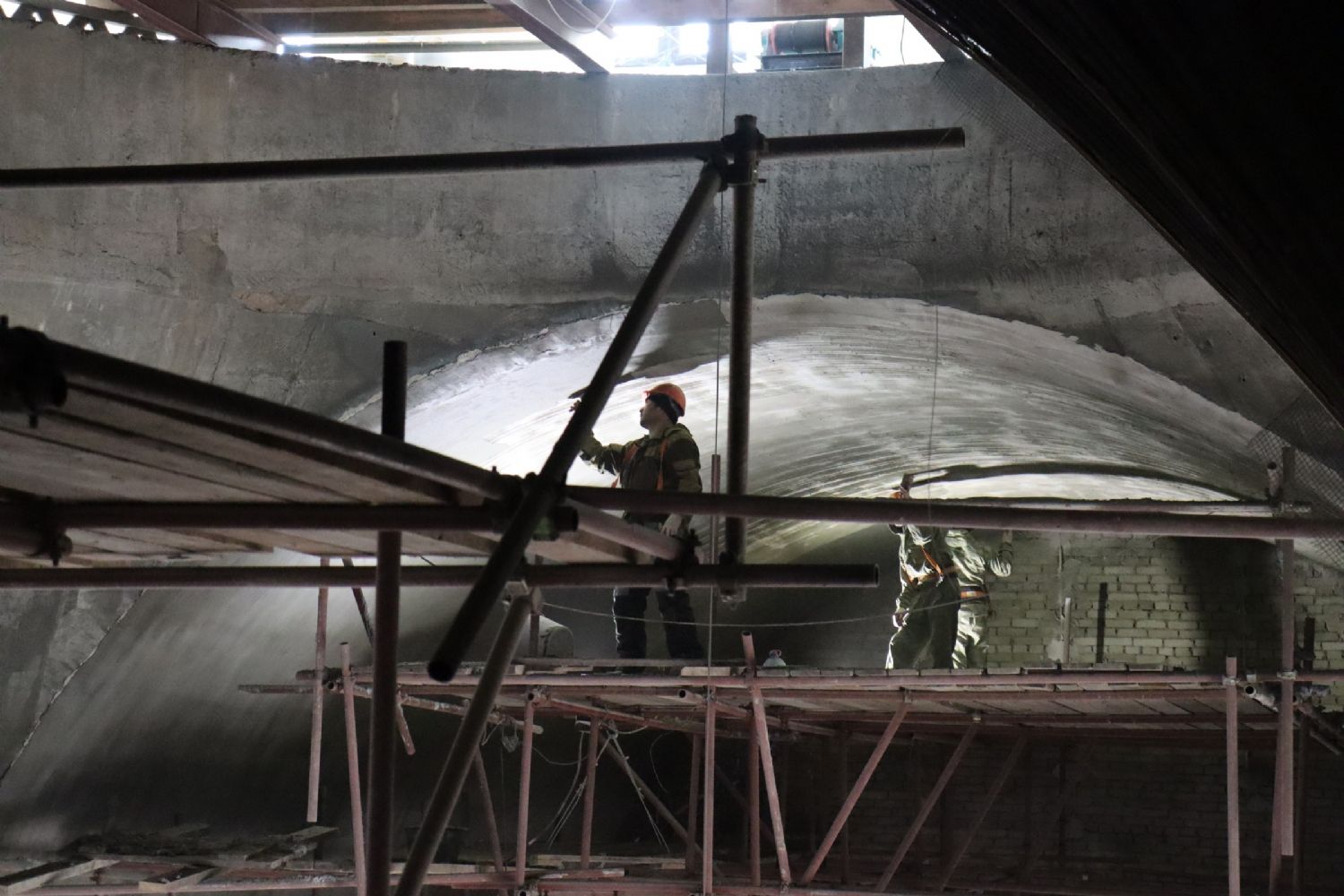 Генеральному подрядчику было поручено произвести установку электрических тепловых пушек в барабане купола на отметке + 28,250 для поддержания оптимального тепловлажностного режима.