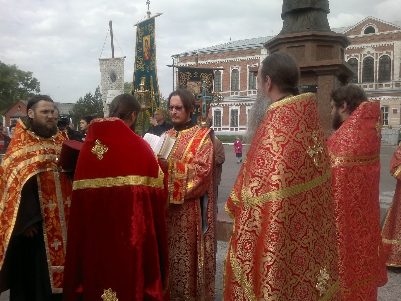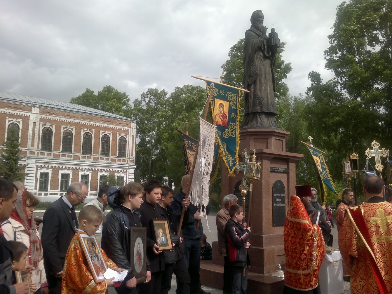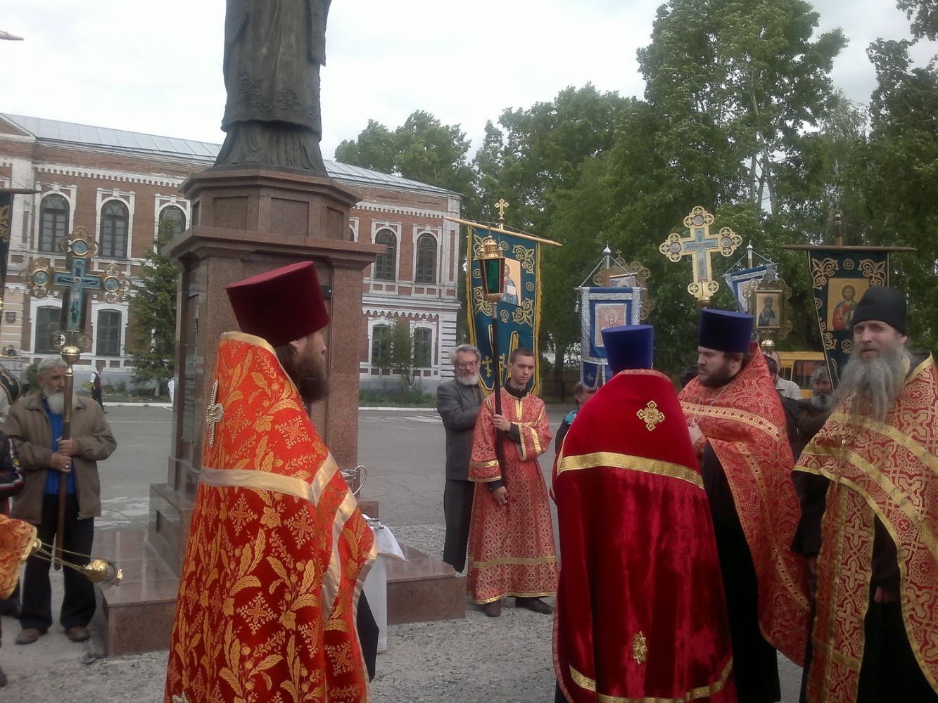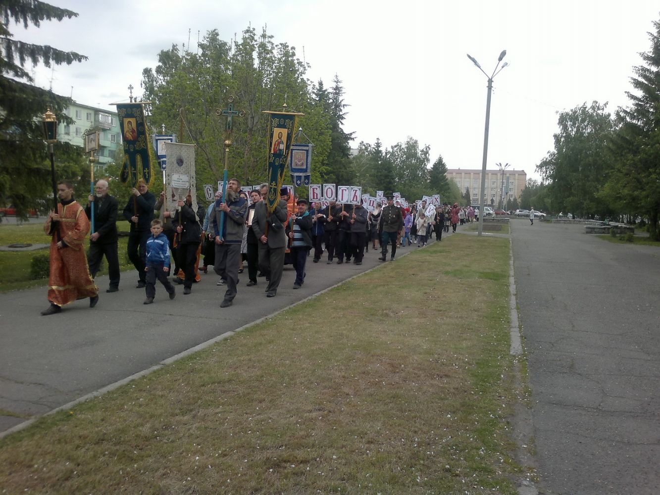 С утра в храмах города отслужили Божественную литургию в память святых равноапостольных Мефодия и Кирилла, учителей словенских. Затем из Успенского кафедрального собора и храма Казанской иконы Божьей Матери направились крестные ходы, соединившиеся на площади Бийского архиерейского подворья, где у памятника святителю Макарию Невскому был совершен водосвятный молебен.