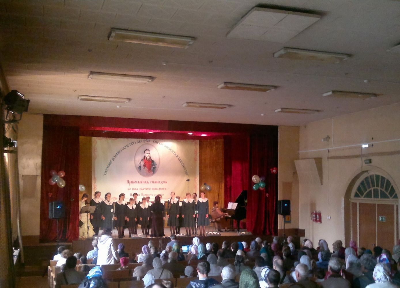 Продолжился праздник уже на сцене актового зала православной школы, где вниманию собравшихся был представлен праздничный концерт. В нем приняли участие известные бийские детские и взрослые музыкальные коллективы: старший хор православной школы, детский духовой оркестр детского дома №4, дуэт «Лепта», семейный дуэт Михайловских и др. Концерт продолжился даже тогда, когда по техническим причинам, в школе отключили свет.