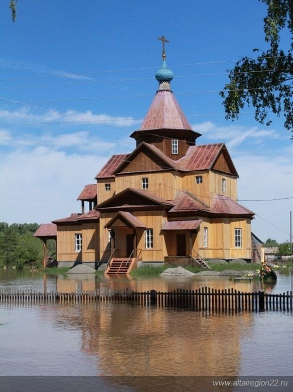 Настоятель храма в селе Малоугренево Бийского района иерей Димитрий Харин, чей храм попал в зону затопления, 4 июня сообщил, что вода потихоньку спадает. Тем не менее, вода «захватила» здание церкви на двое суток. Пик пришелся на ночь с 31 мая на 1 июня.