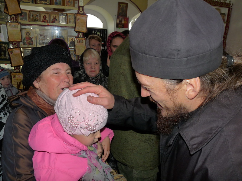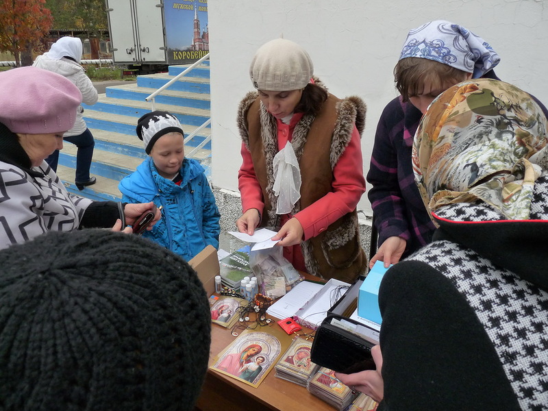 Первые паломники из окрестных сел и молодые мамы Сибирского с младенцами в колясках начали «подтягиваться» к храму к 13 часам. Под руководством иеромонаха Никандра (Речкунова), из монастырской «Газели» осторожно извлекли икону, и священники иерей Сергий Тимофеев, иерей Георгий Богович с помощниками бережно водрузили ее в притворе храма, поскольку внутри идут масштабные реставрационные работы. Притвор быстро до отказа заполнился народом.