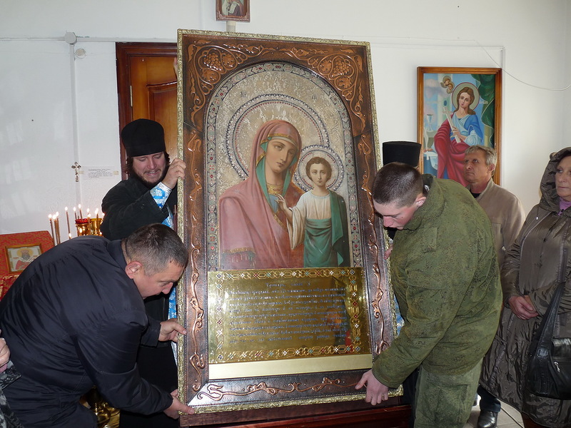 Прежде всего, настоятель воинского храма святой Варвары иерей Сергий Тимофеев попросил иеромонахов, сопровождающих святой образ, заехать в расположение ракетного соединения, где Царицу Небесную ждали воины-ракетчики, стоящие на плацу в плотном строю своих подразделений. Офицеры и солдаты срочной службы по очереди неспешно крестились и прикладывались к чудотворному образу Богородицы – главной алтайской святыне.