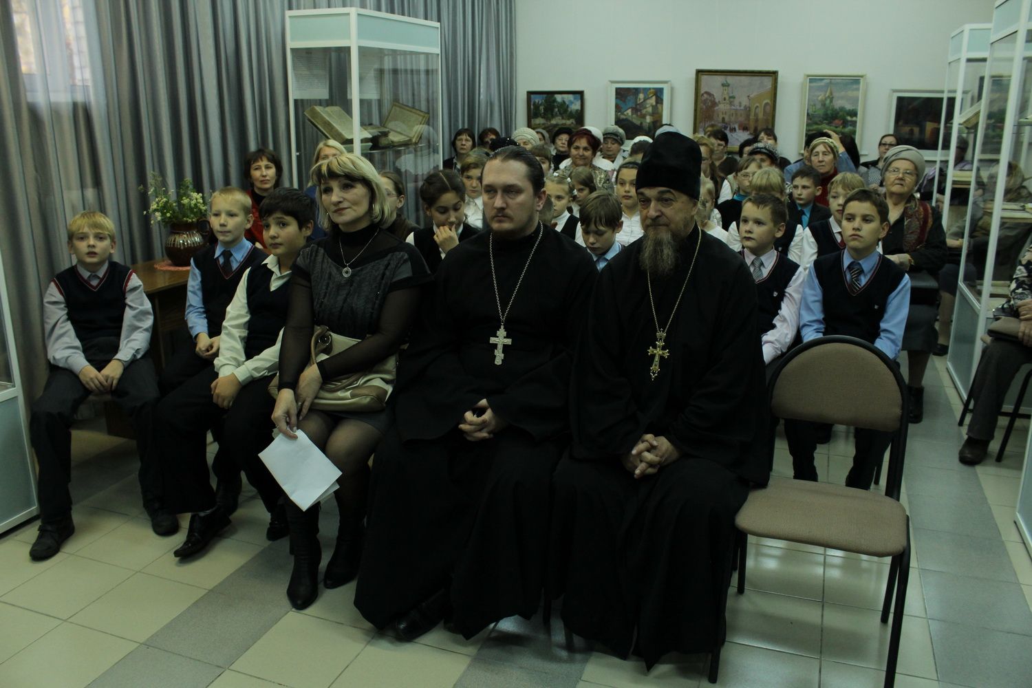 В приветственном слове благочинный Рубцовского округа, митрофорный протоиерей Михаил Кизюн заметил, что, вспоминая детство преподобного Сергия Радонежского, мы вспоминаем о том, как усердно он молился и Господь даровал ему знания. И современным детям тоже необходимо показывать старинные книги, по которым учились их бабушки и прабабушки, показывая тем самым преемственность знаний, переходящих из поколения в поколение. А директор музея Марина Селиванова пожелала всем присутствующим воспользоваться возможностью и подробнее рассмотреть те уникальные книги, которые представлены на выставке.