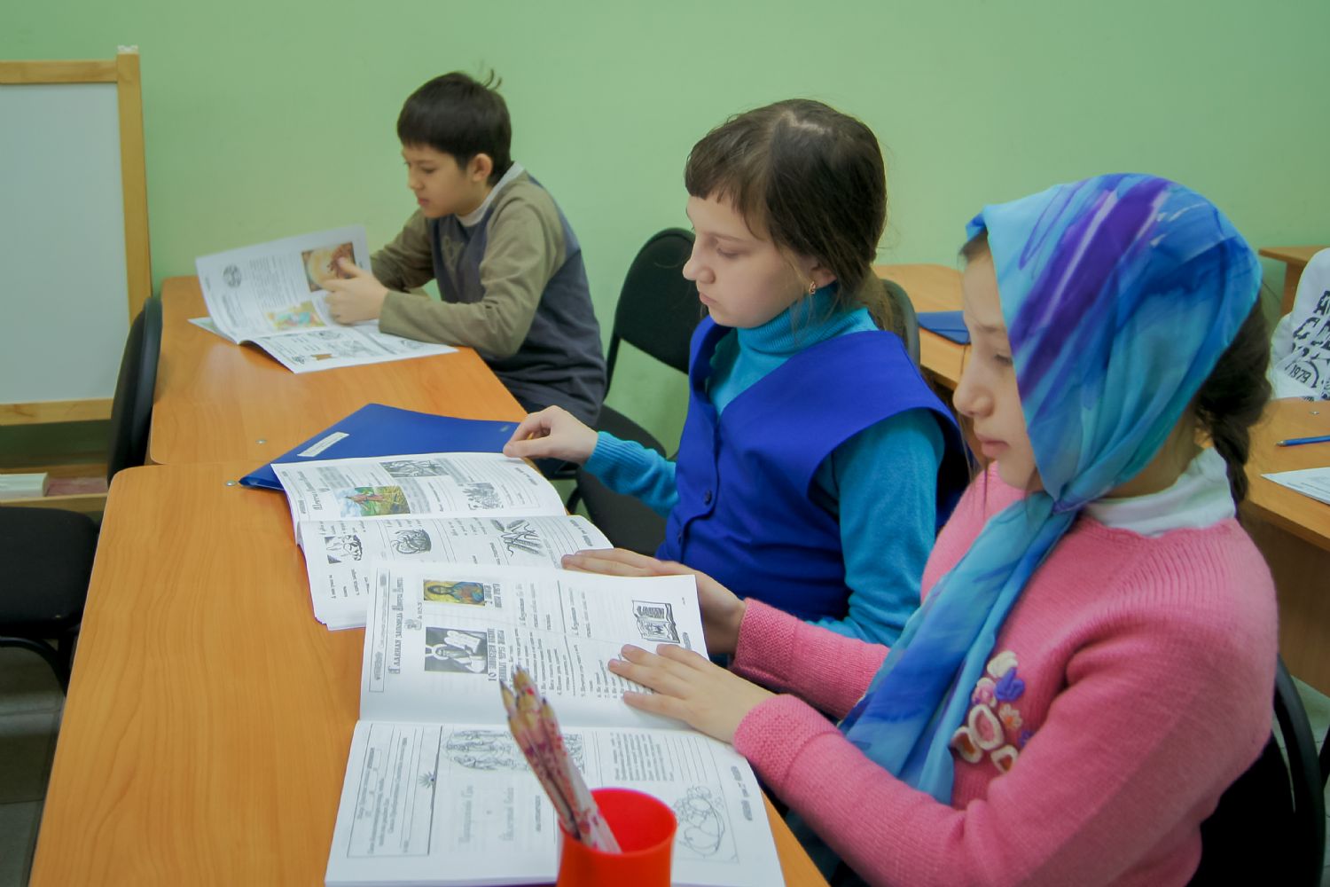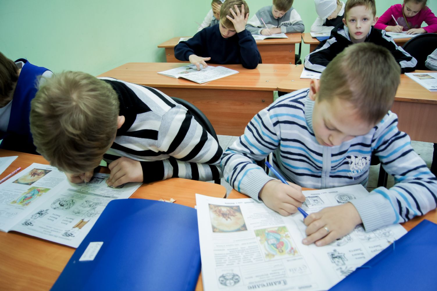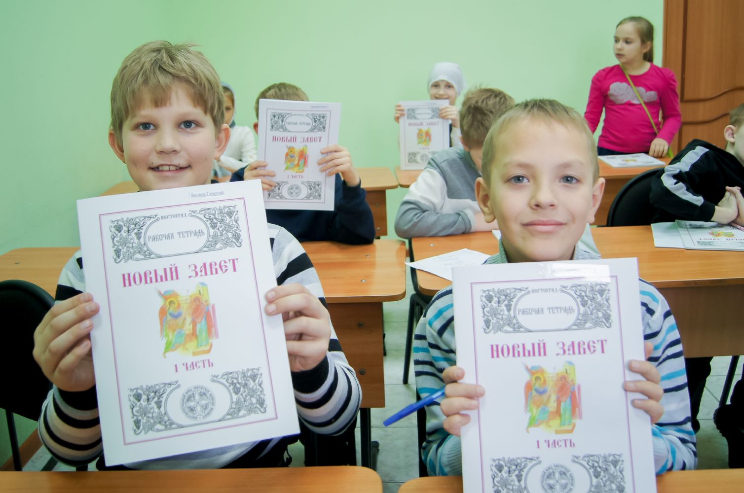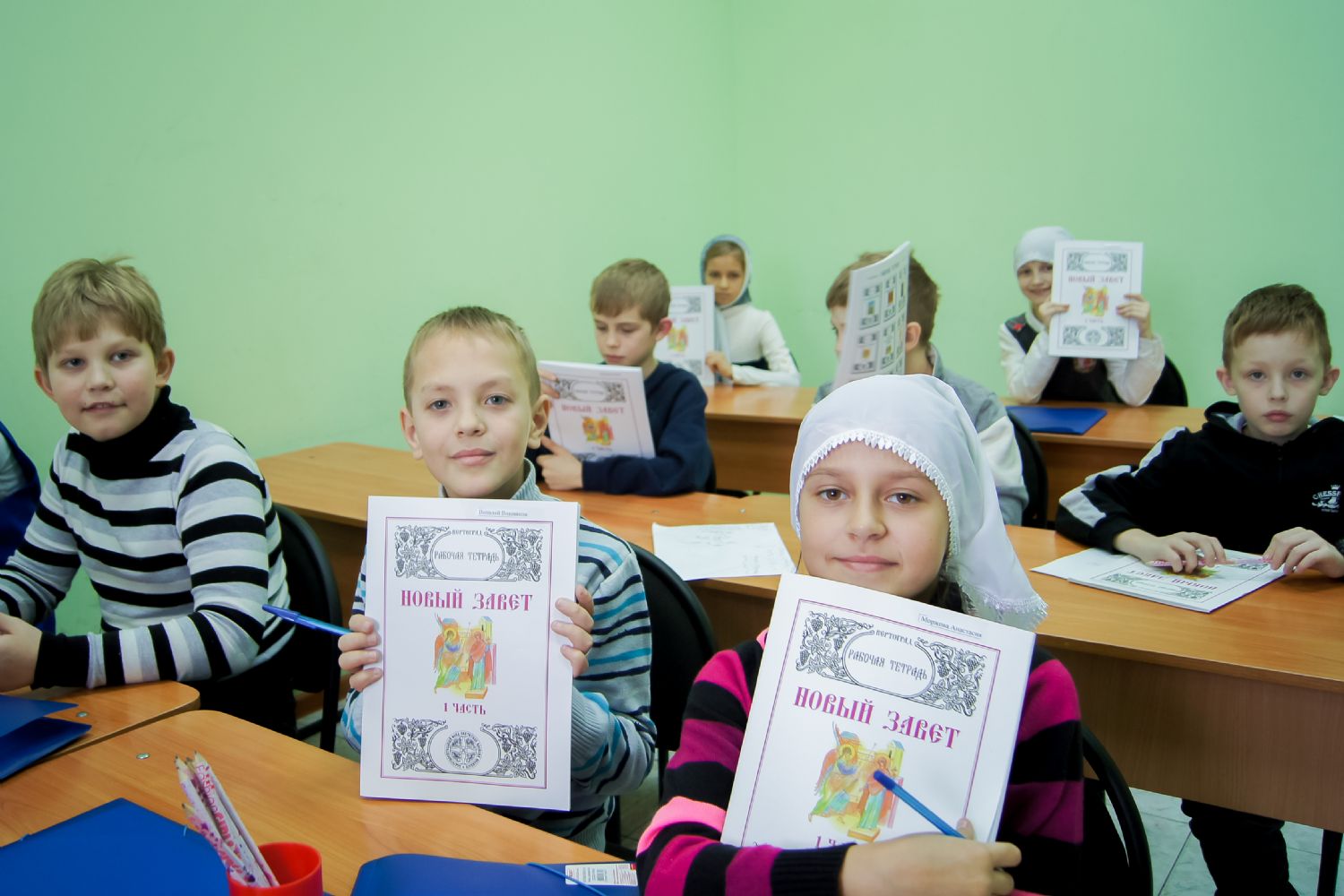 С минувшего воскресенья в воскресной школе Димитриевской церкви Барнаула занятия с учащимися качественно изменились. Для детей были приобретены рабочие тетради по Закону Божьему (программы Православный иконостас для младших детей и Новй Завет для детей постарше, а также тетради по церковно-славянскому языку.