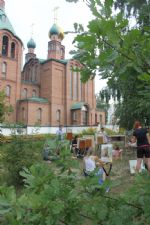 Студенты Новоалтайского художественного училища провели пленэр на территории местного храма во имя святого великомученика Георгия Победоносца.