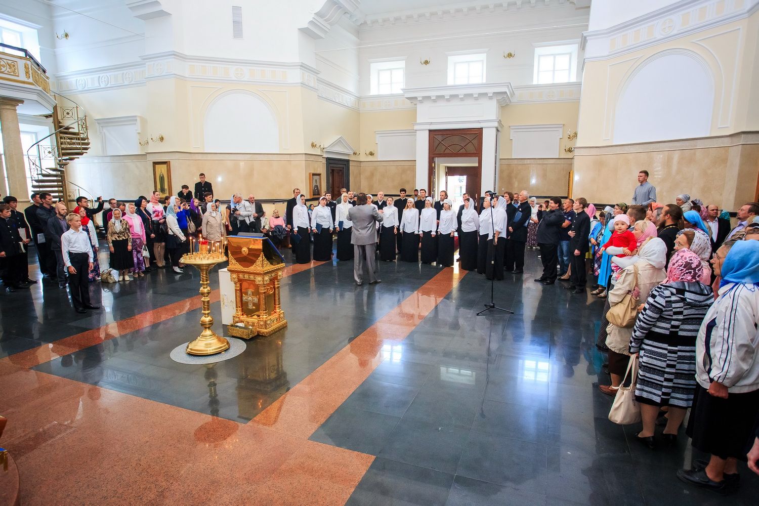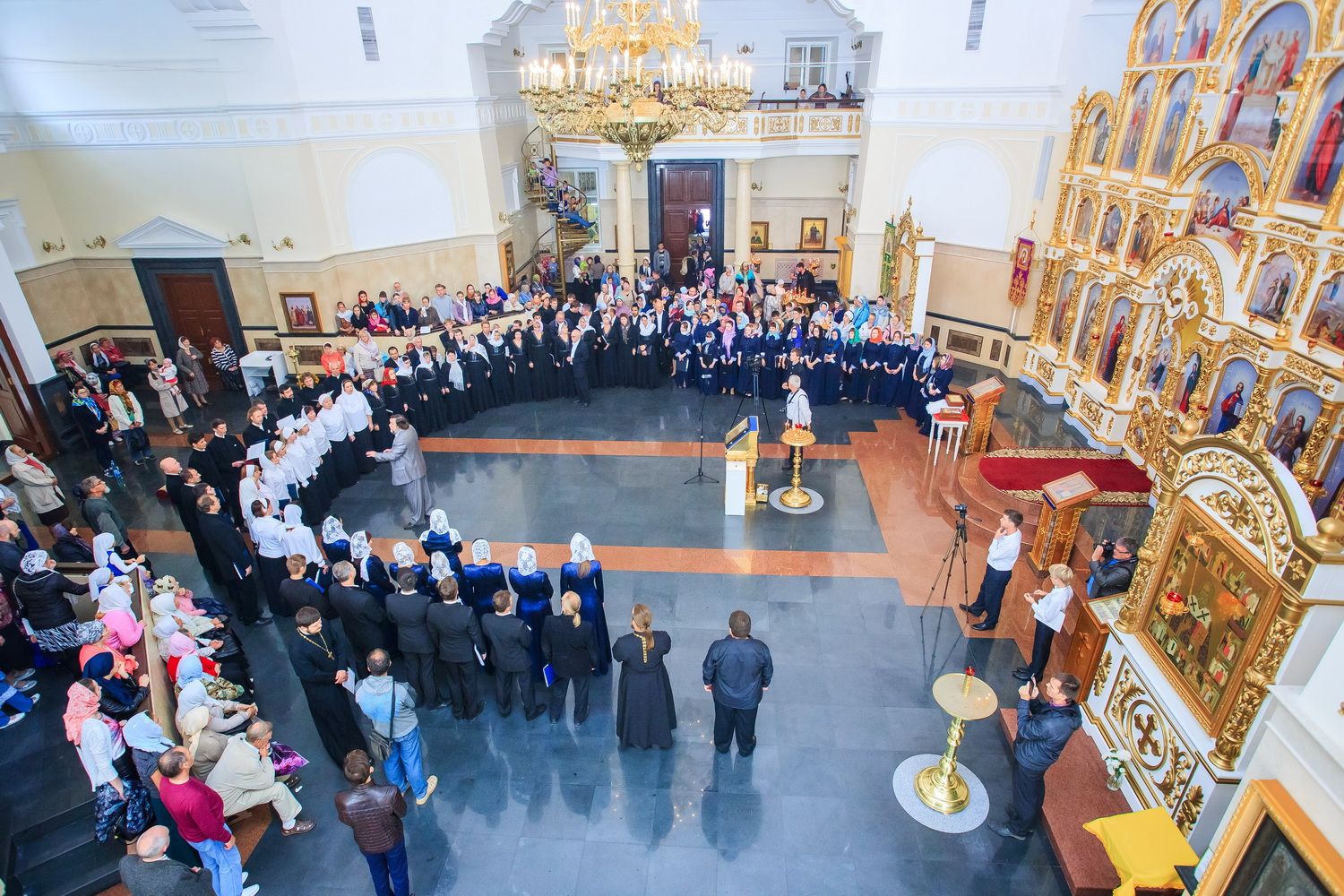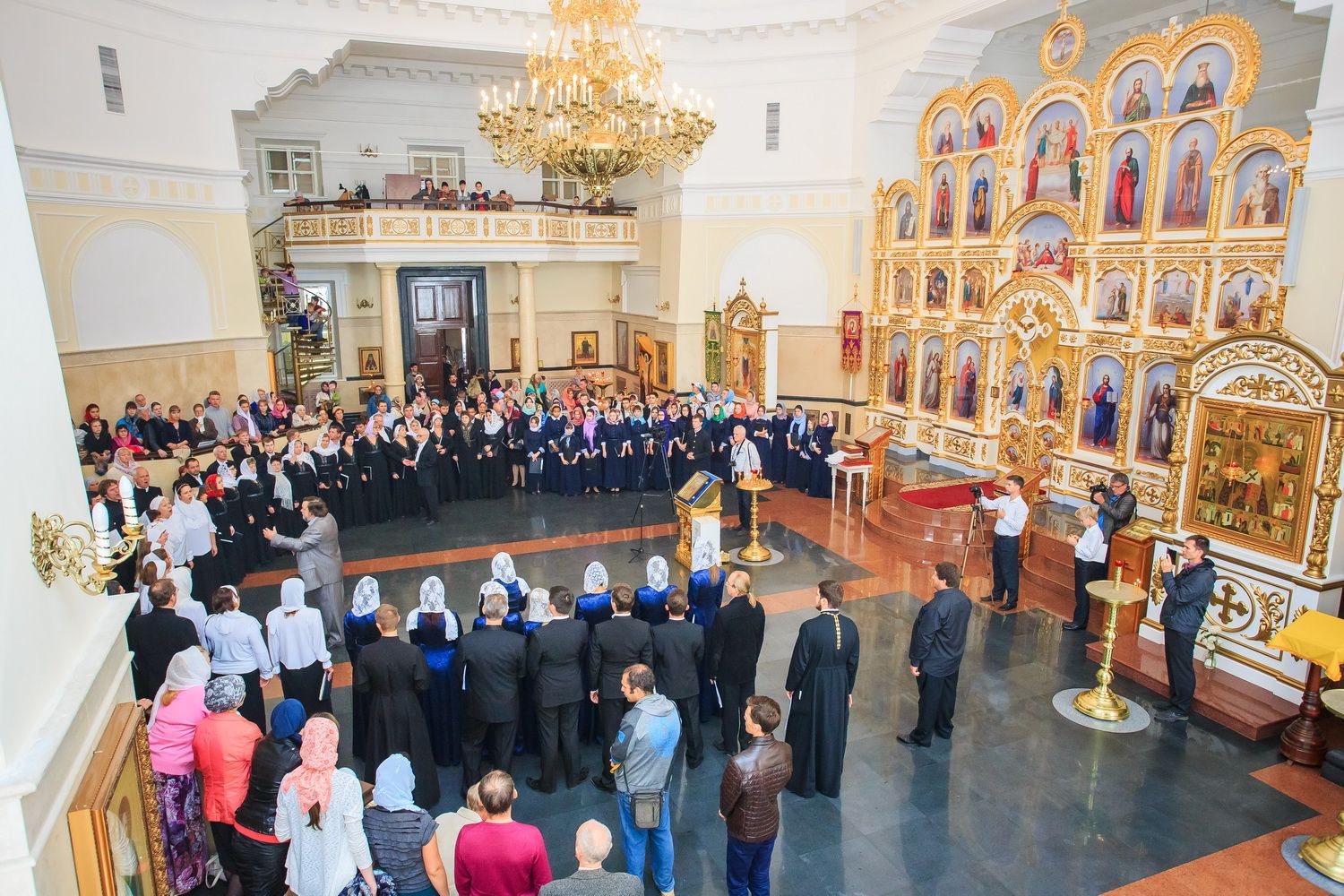 После Литургии и молебного пения о сохранении творения Божия в старейшем храме Барнаула собрались хоровые коллективы краевой столицы (Муниципальный хор Барнаула, Хор Алтайского государственного музыкального колледжа, Мужской и Смешанный хоры Покровского кафедрального собора Барнаула), а также Камерный хор Творческого объединения «Шереметев-Центр» ИГХТУ из г. Иваново-Вознесенска, которые по очереди исполнили духовные произведения древнерусских распевов и современных композиторов.