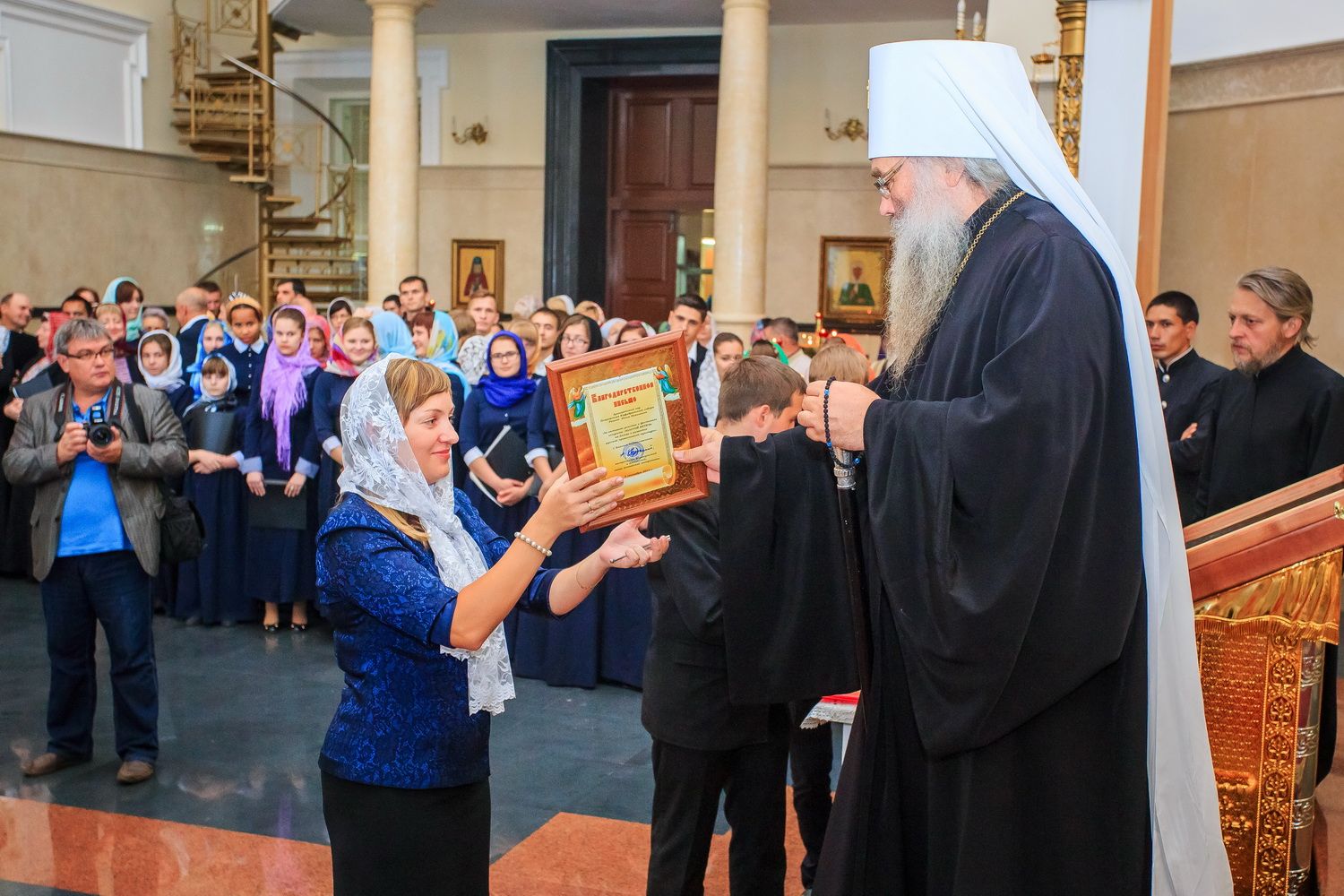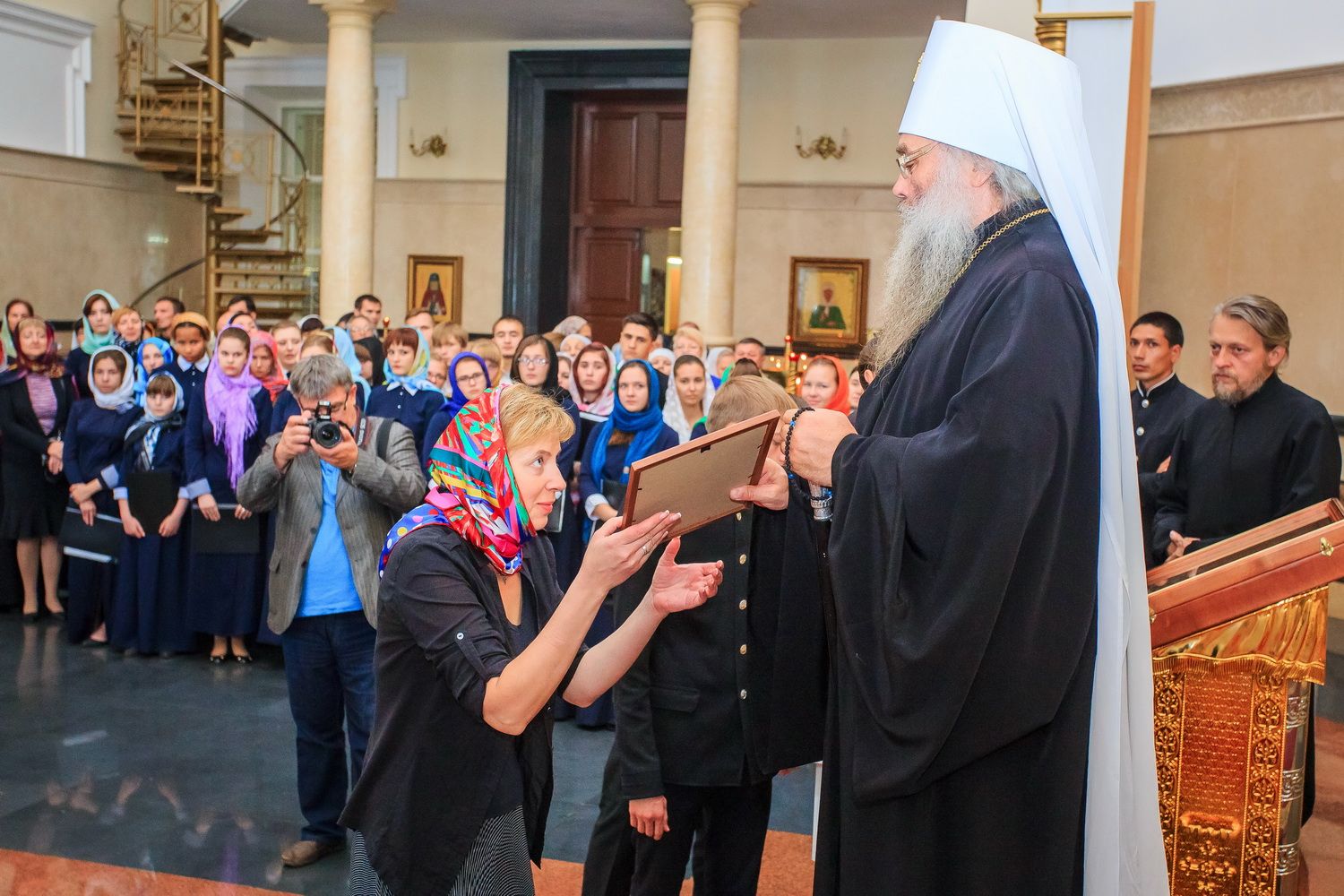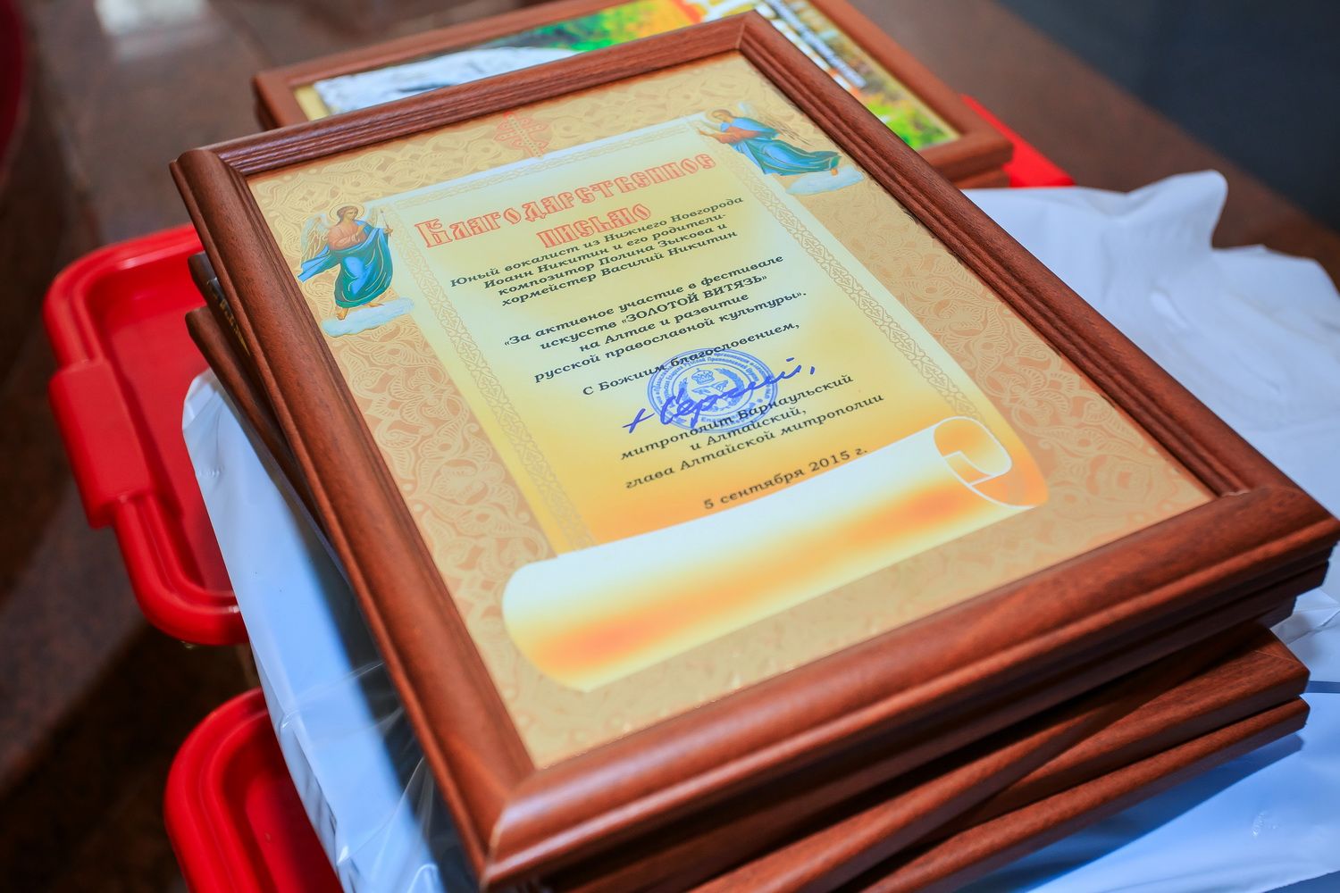В завершение мероприятия глава Алтайской митрополии поздравил всех присутствующих с праздником, а также вручил организаторам и участникам Большого хорового собора благодарственные письма.