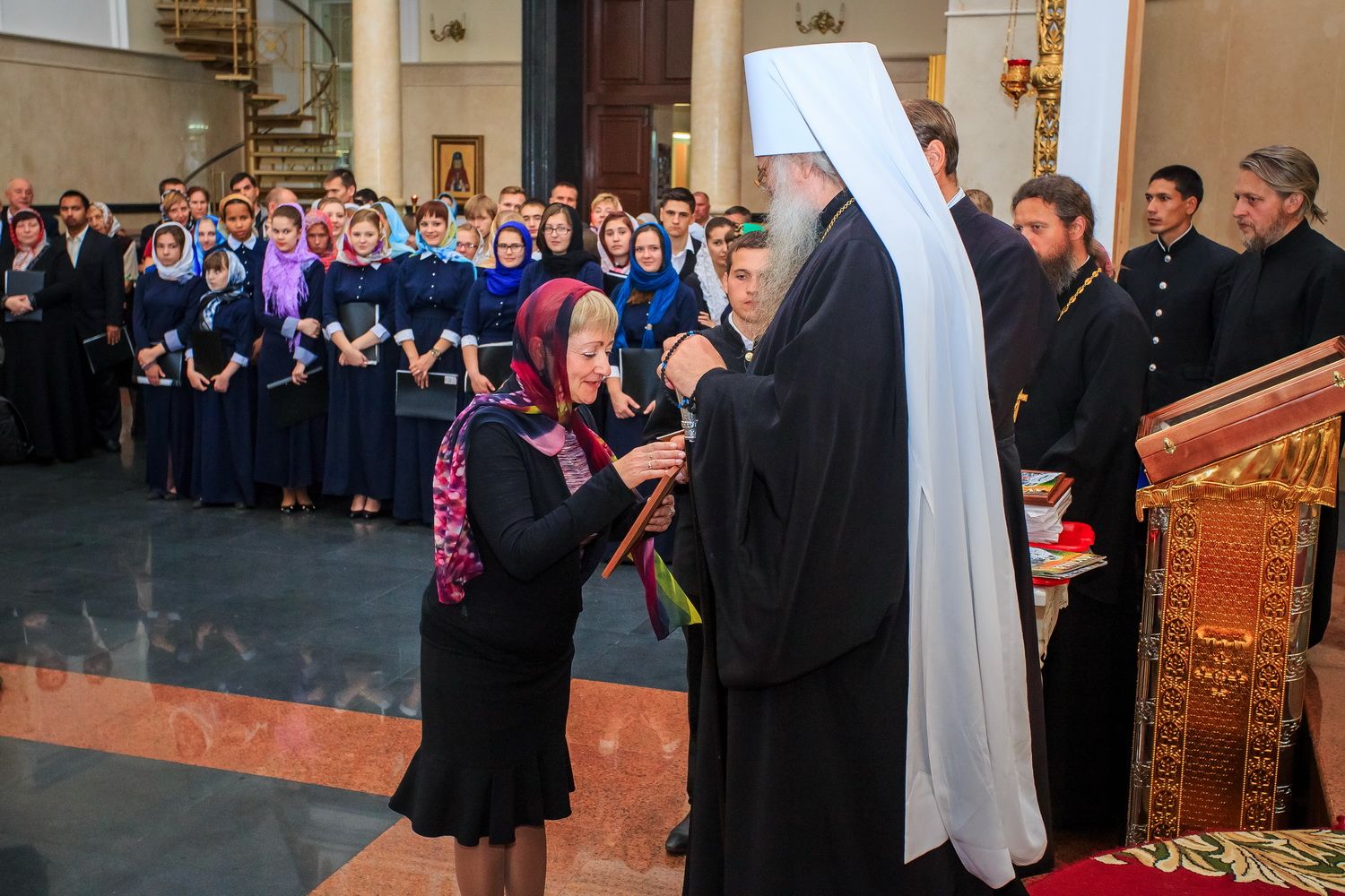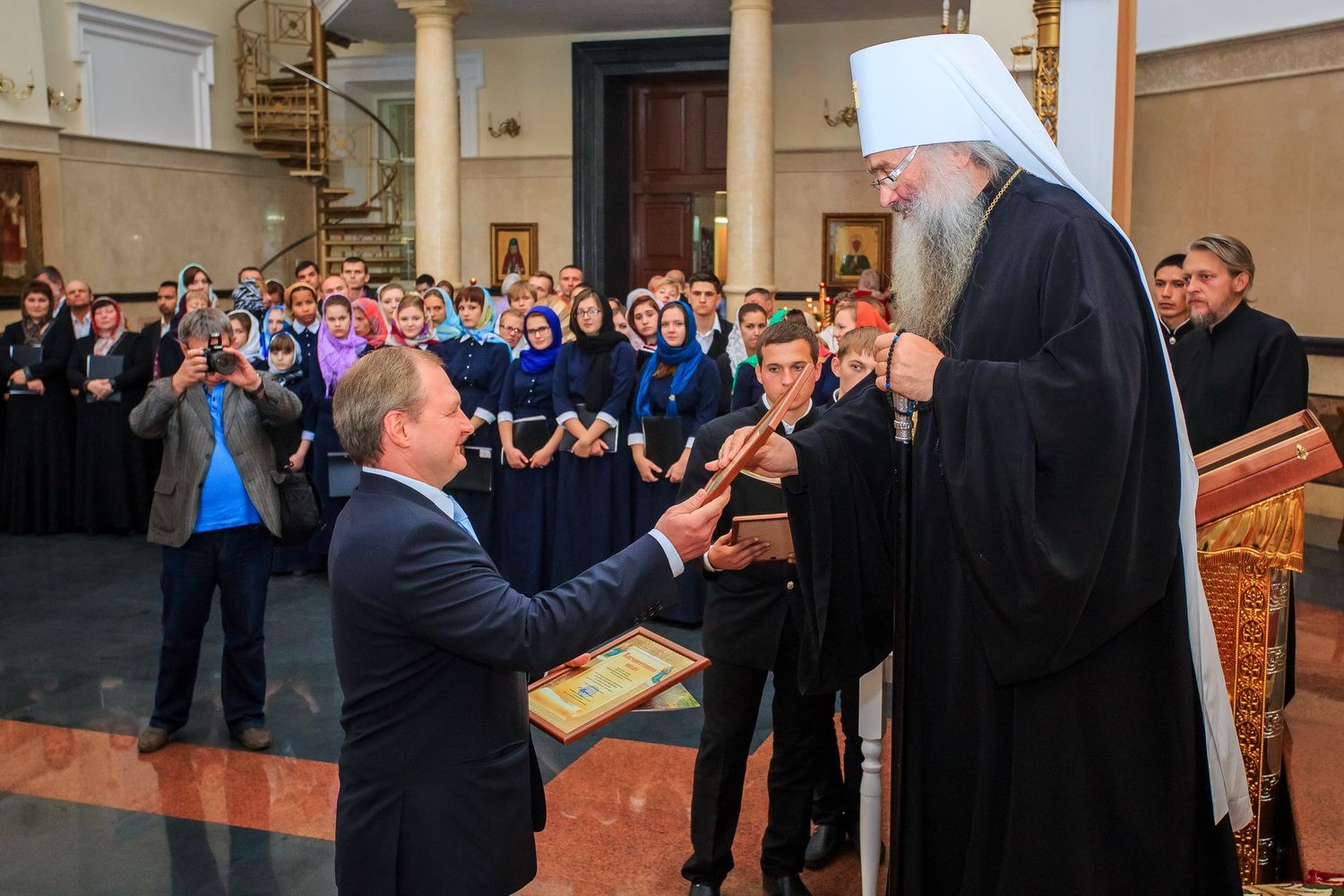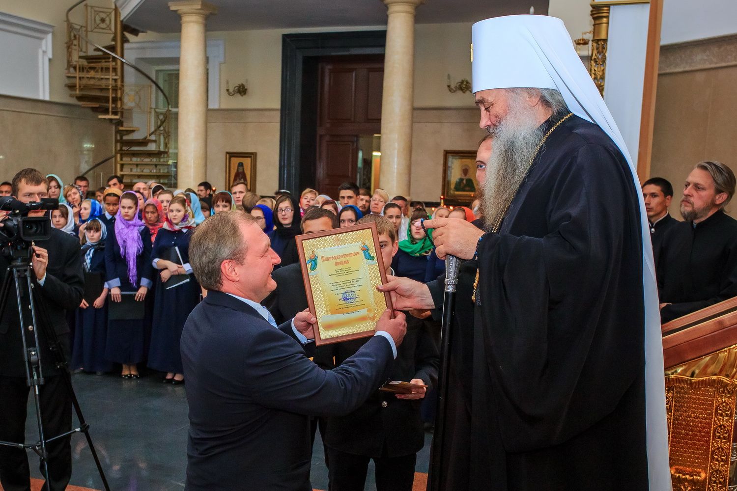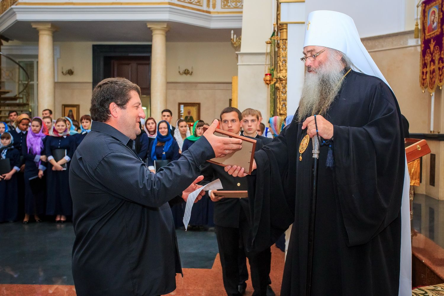 В завершение мероприятия глава Алтайской митрополии поздравил всех присутствующих с праздником, а также вручил организаторам и участникам Большого хорового собора благодарственные письма.