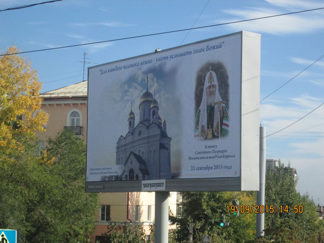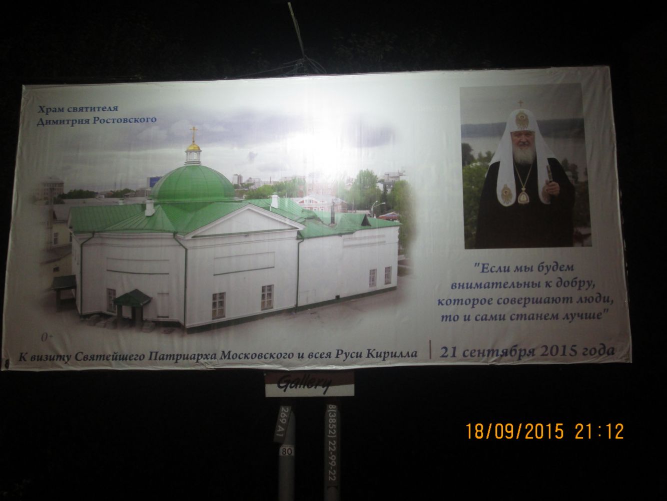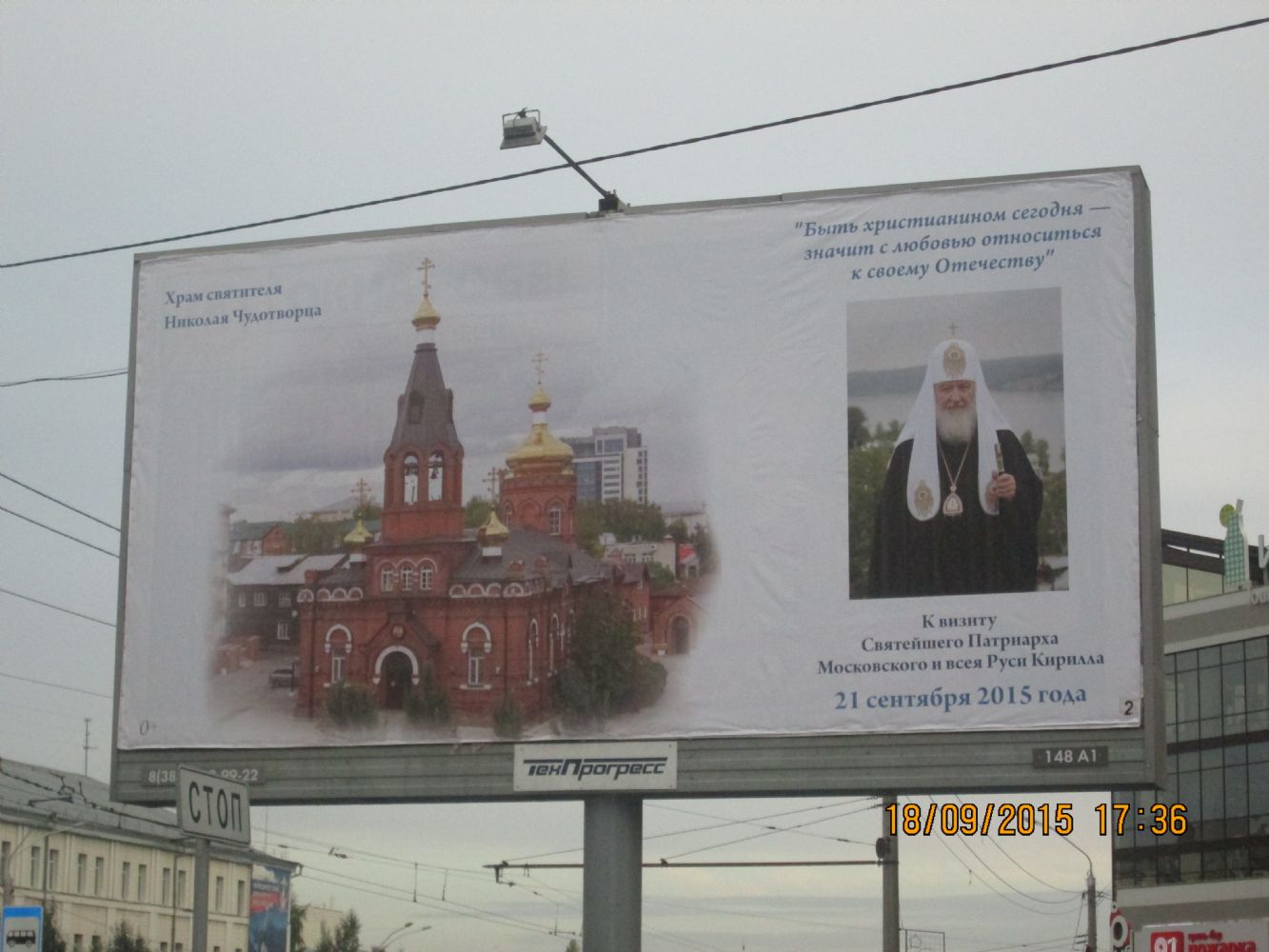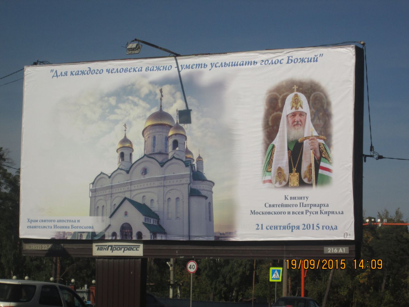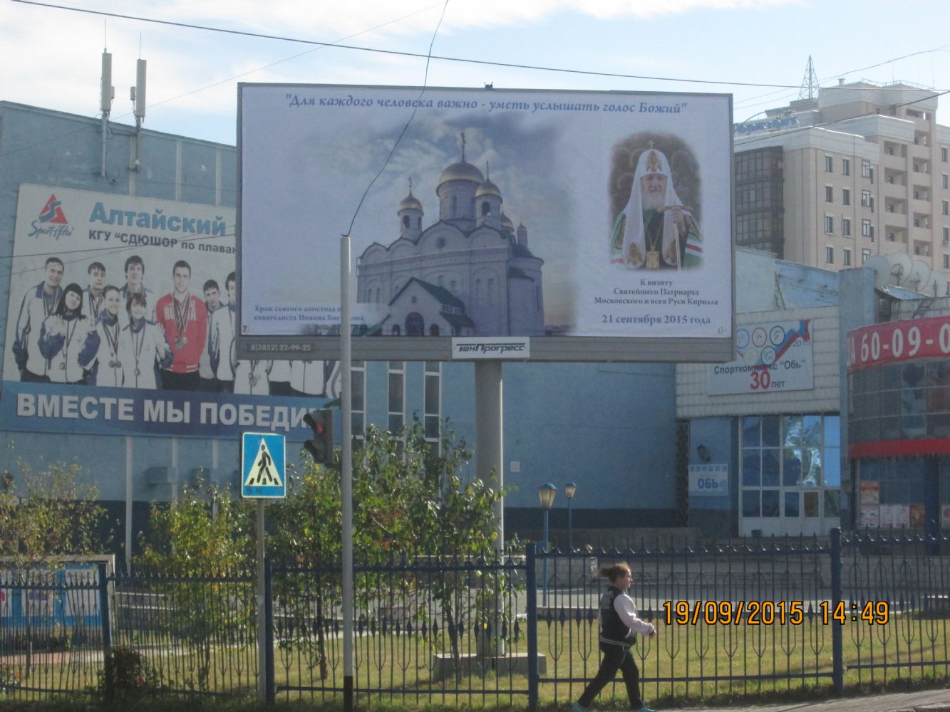 К приезду Святейшего Патриарха Московского и всея Руси Кирилла в Барнаульскую епархию в краевой столице разместили билборды с изображениями действующих храмов Барнаула.